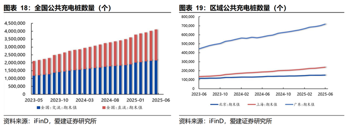 截至2025年5月,全国充电桩4,082,800个,其中区域性充电桩广东723,252个,上海244,434个,北京152,158个,蔚来公共充电桩27,747个。我国充电基础设施快速发展,已建成世界上数量最多、服务范围最广、品种类型最全的充电基础设施体系,有力保障新能源汽车出行充电需要。