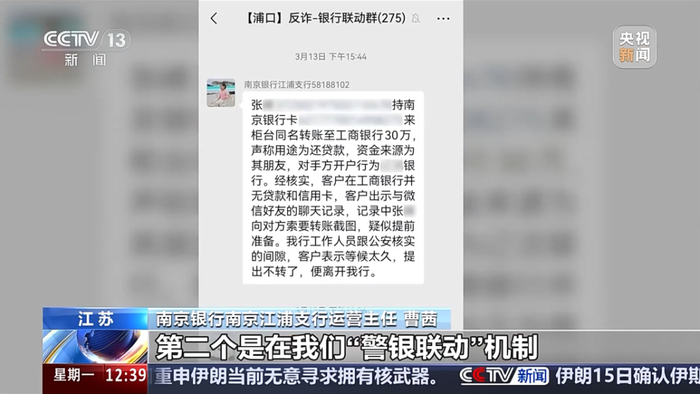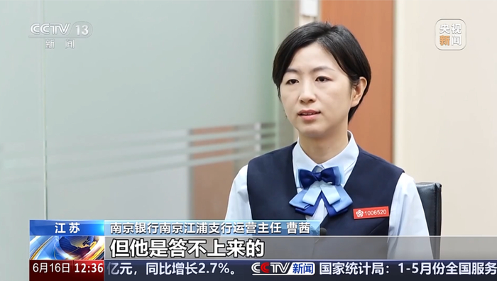 南京银行南京江浦支行运营主任 曹茜 因为防范客户被电信诈骗,所以我们会去关心一下他,你在这个行的贷款大概是多少钱,但是他答不上来。