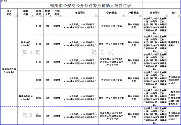 郑州市公安局计划招聘警务辅助人员1060名,身份性质为非人民警察、非公务员、非事业单位人员。