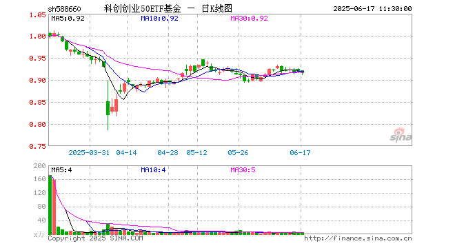 科创创业50ETF基金(588660)跌0.54%,半日成交额270.60万元