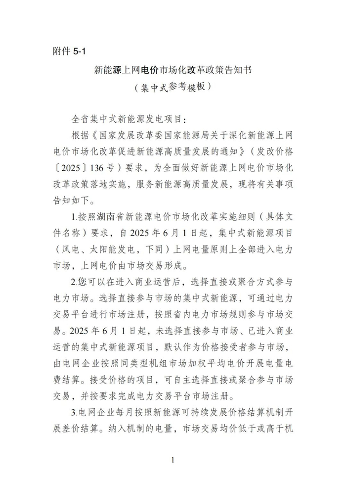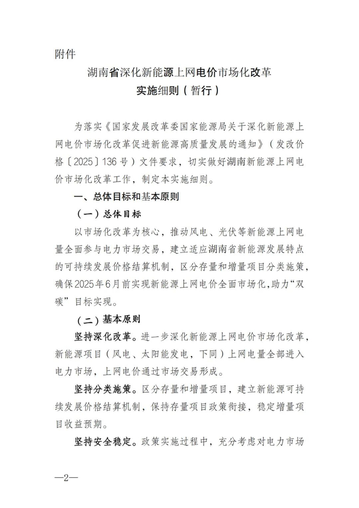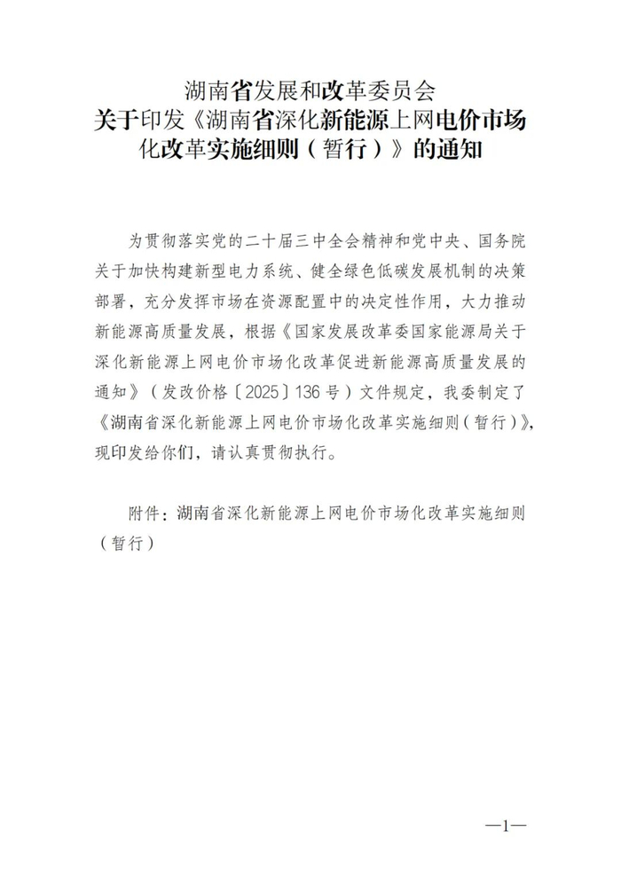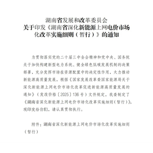 近日,湖南省发改委关于印发《湖南省深化新能源上网电价市场化改革实施细则(暂行)》的通知文件流出(全文附后)。该文件为相关部门内部讨论稿,仅供参考。