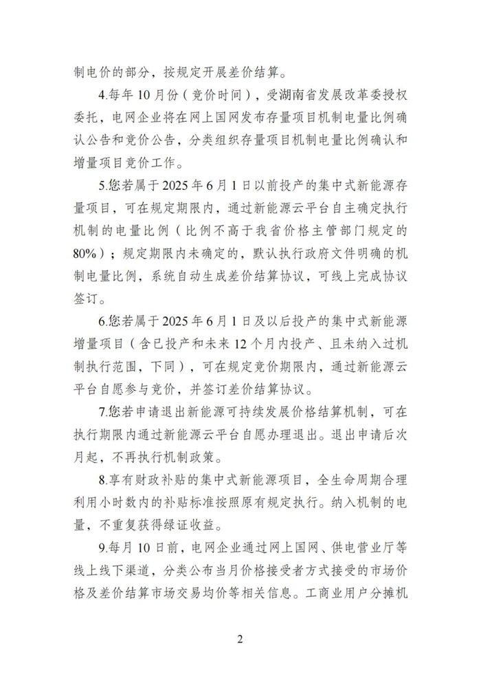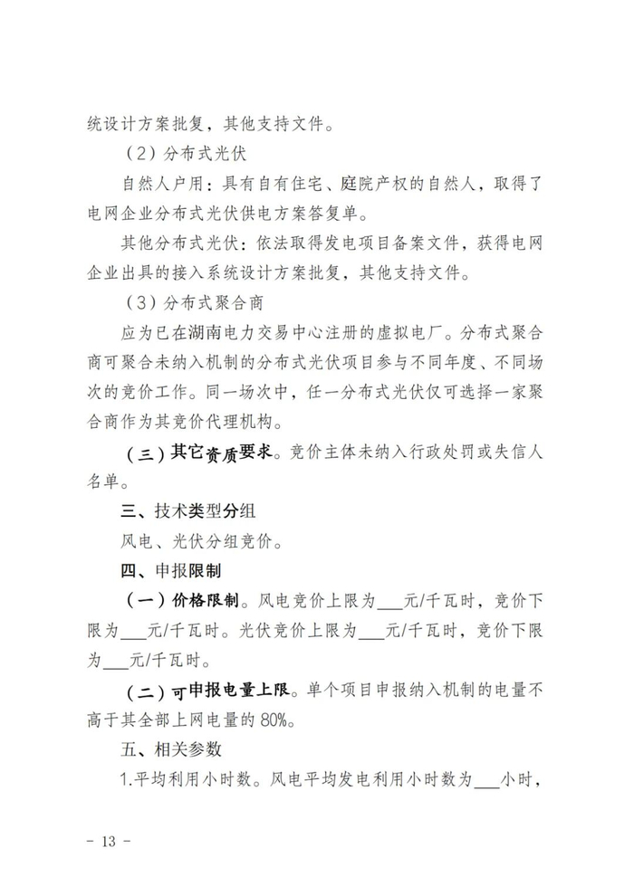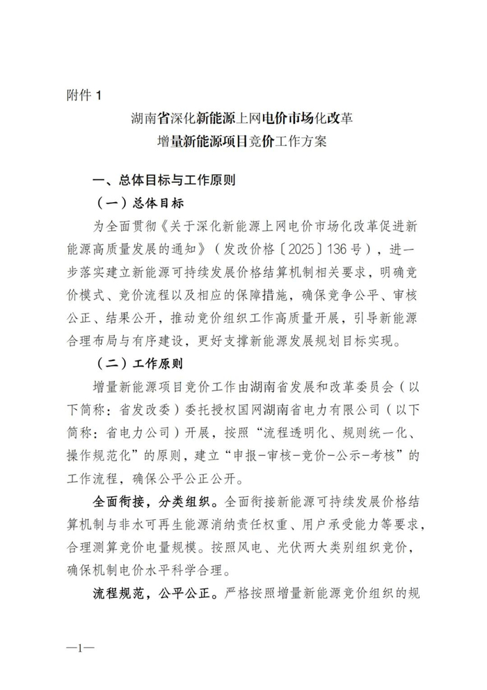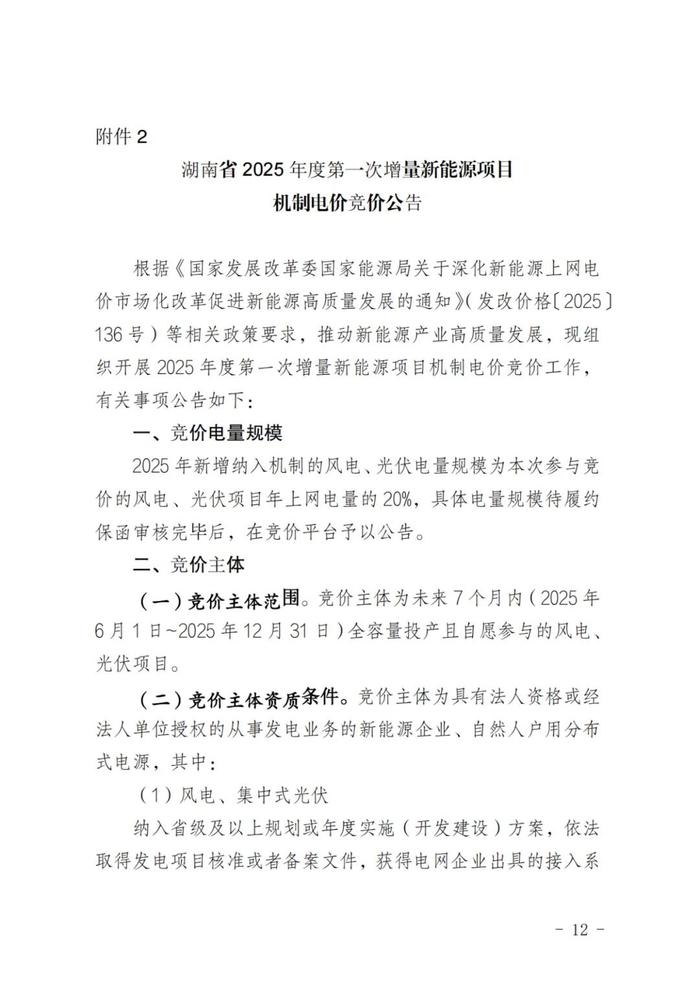 湖南:增量风电、光伏项目分开组织竞价!2025年竞价上限为0.38元/KWh,下限为0.26元/KWh