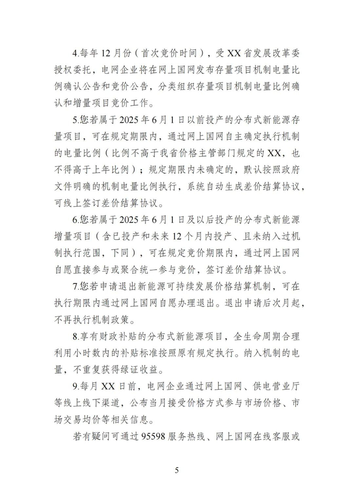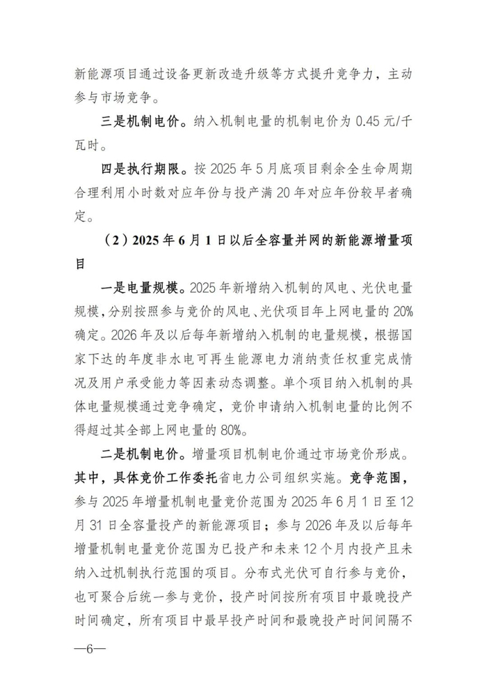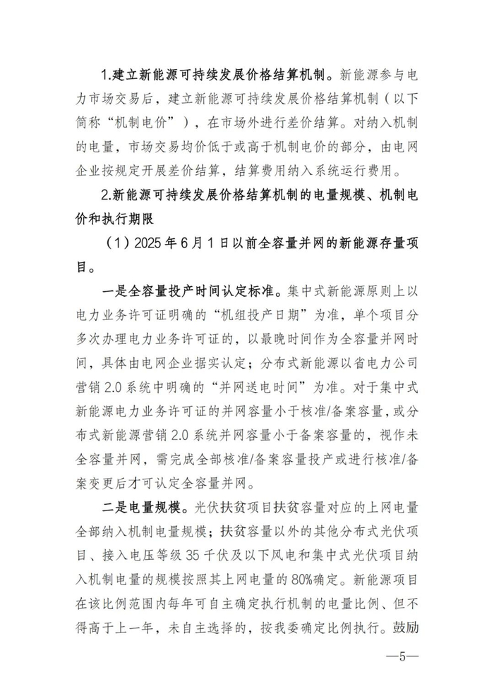 其中,2025年6月1日前全容量并网的存量项目方面表示,
