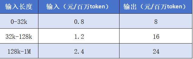 在0-32k输入长度和32k-128k输入长度下,M1的价格相比未按区间计价的DeepSeek-R1(输入4元/百万token,输出16元/百万token)更有性价比,而对于最长的128k-1M的输入长度,DeepSeek模型则不支持。