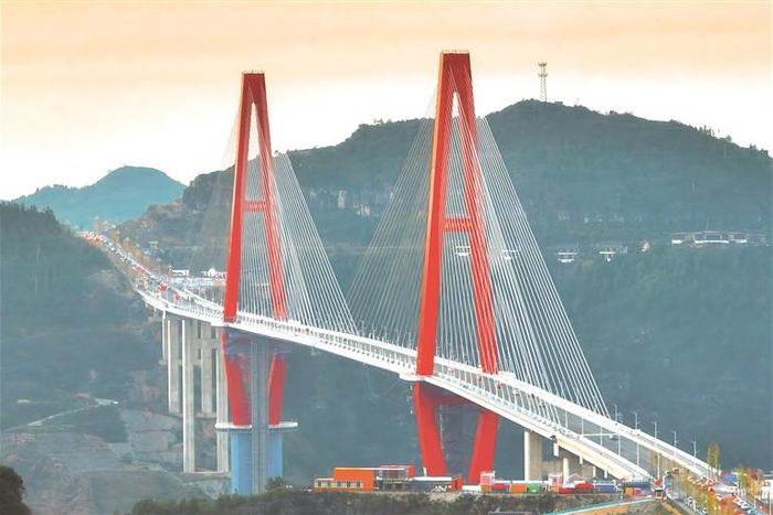 基础设施建设大踏步前进,加快融入新发展格局。2015年12月31日,随着望谟县至安龙县高速公路项目建成通车,贵州成为西部地区第一个“县县通高速公路”的省份,也是全国实现“县县通高速”的为数不多的省份之一。截至2024年,高速公路总里程突破9000公里,世界前100座高桥有近一半在贵州。2019年,率先在西部实现30户以上自然村寨全部通硬化路。截至2024年,全省高铁通车里程突破1800公里,贵阳成为全国重要高铁枢纽,形成了连接长三角、珠三角、京津冀和川渝滇的快速通道。截至2024年,全省共有11座民用机场,民用航空机场实现市州全覆盖。水利基础设施建设体系和水运大动脉加快形成。建成黔中水利枢纽、夹岩、黄家湾等一批水利工程,乌江水运全线复航,北上长江、南下珠江的水运大动脉正加快形成。作为西部陆海新通道的重要节点,打造了全国首个综保型国际陆港——贵阳国际陆港,打造了全国为数不多的综合性航空口岸——贵州“一局四中心”。