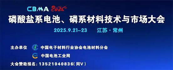 中国电子材料行业协会电池材料分会将在2025年9月21-23日江苏常州(或苏州)举办“2025磷酸盐系电池、磷系材料技术与市场大会暨超快充用负极材料技术创新论坛”,信息如下: