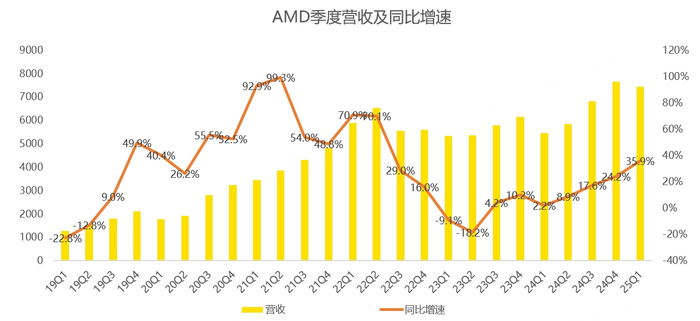 根据一季报的指引,AMD二季度营收增速同样在32%左右,如果不是美国政府将MI300芯片纳入出口管制,AMD的增速会更好。