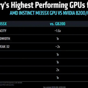 与英伟达的B200 和 GB200相对比,在内存容量方面,MI355X 约为竞品的 1.6 倍,内存带宽则基本持平;