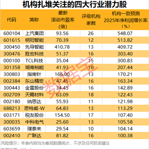 这四大行业获机构密集看好,16股净利有望暴增超100%