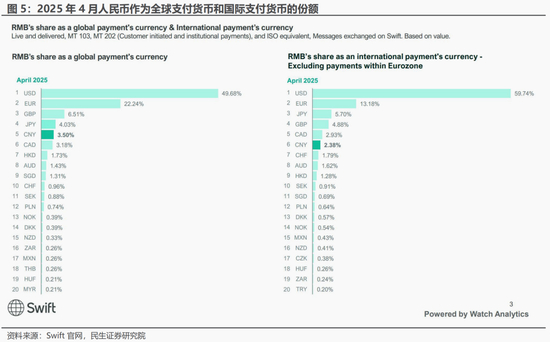 跨境支付体系仍然以美元为核心。根据Swift官网发布数据,2025年4月份全球跨境支付中美元仍然占据主导地位,作为支付货币美元的市场份额为49.68%,显著高于其他货币。根据美国以及中国香港稳定币法案条例,稳定币应当1:1挂钩法币,假设后续稳定币在跨境支付中广泛使用,背后仍然是挂钩法币起到铆钉价值作用。因此积极探索稳定币落地,对于我国人民币国际化发展仍然起到积极作用。