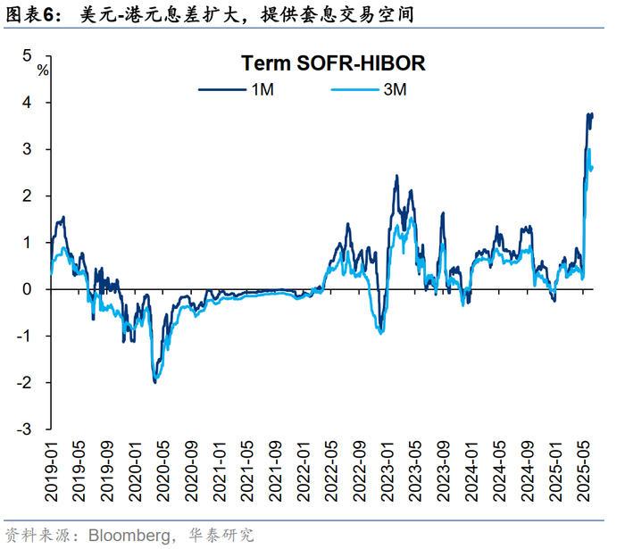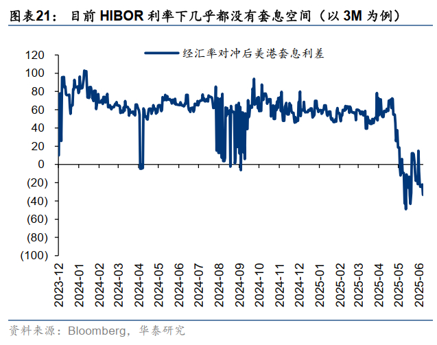 港元隔夜分时数据触及弱方保证引发市场关注。我们认为,在人民币不再贬值甚至有升值预期的大背景下,港币持续冲击弱方保证和流动性大幅收紧可能性都较低。香港扩容和增配长期趋势不变,因此若金管局操作带来波动,反而可能创造增配区间。