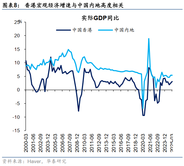 本地金融条件宽松(紧缩)会刺激(压制)香港经济和资本市场,但这些因素都是边际的,且更多集中在对本地资金利率敏感的板块上。总量角度,中国香港地区经济和市场的核心影响因素还是中国内地的经济基本面。