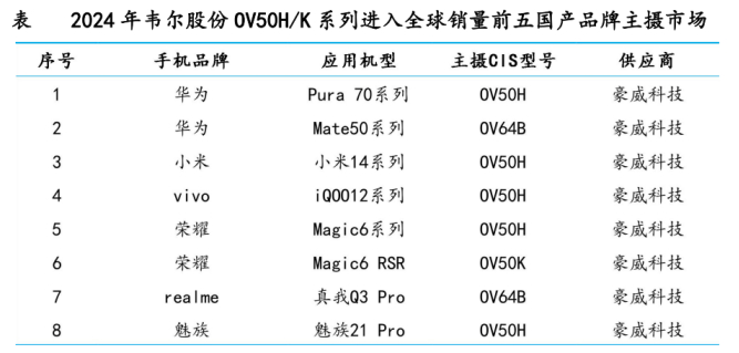 截至2024年底,OV50H已成功应用于小米14/Pro、小米15/Pro、华为Pura70/Pro/Pro+等国内高端旗舰机型的后置主摄。