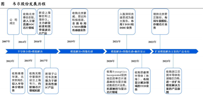 2007年韦尔股份成立,初期从事半导体分销与模拟IC业务。