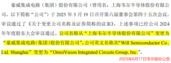 值得一提的是,6月17日韦尔股份发布公告,将公司名称从“上海韦尔半导体股份有限公司”变更为“豪威集成电路(集团)股份有限公司”,可见其对CIS业务的重视。
