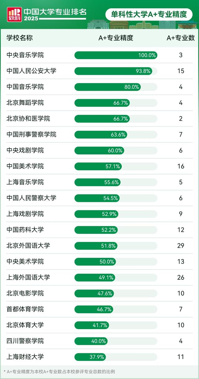 其后,首都体育学院(7个)、首都医科大学(7个)、中国刑事警察学院(7个)、广州美术学院(6个)、南方医科大学(6个)、中国人民警察大学(6个)的A+专业数也都超过5个。