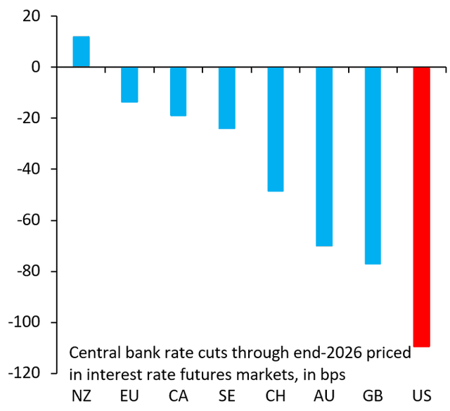 值得一提的是,眼下市场预期美联储从目前到2026年年底的降息幅度可能会远超其他任何G10央行,这或许也将进一步加剧美元面临的下行压力。