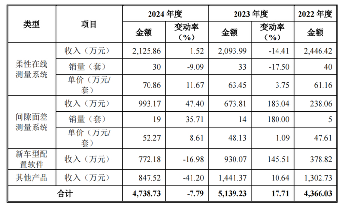 而视觉测量系统收入下滑则由于新车型配置软件、其他产品收入同比累计减少了751.74万元。