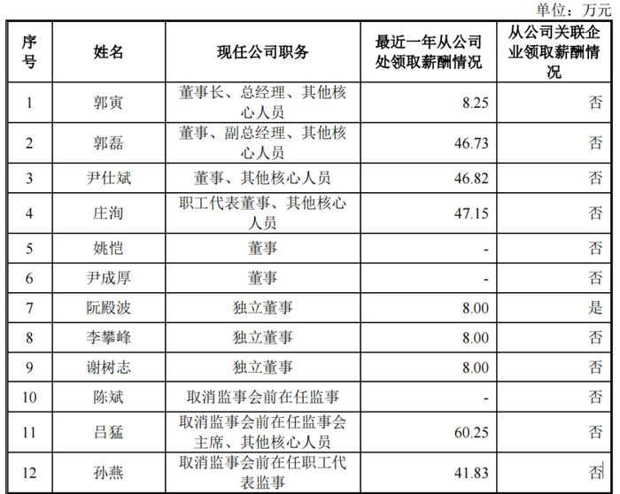 而作为董事长,郭寅2024年仅领薪8.25万元,而郭磊、尹仕斌、庄洵年薪均超46万元。