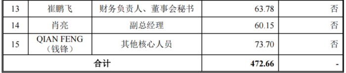 升任财务负责人,崔鹏飞的年薪仅次于核心技术人员QIAN FENG(钱锋),2024年,两人年薪分别63.78万元、73.7万元。其次是前监事会主席吕猛、副总肖亮,分别为60.25万元、肖亮60.15万元。