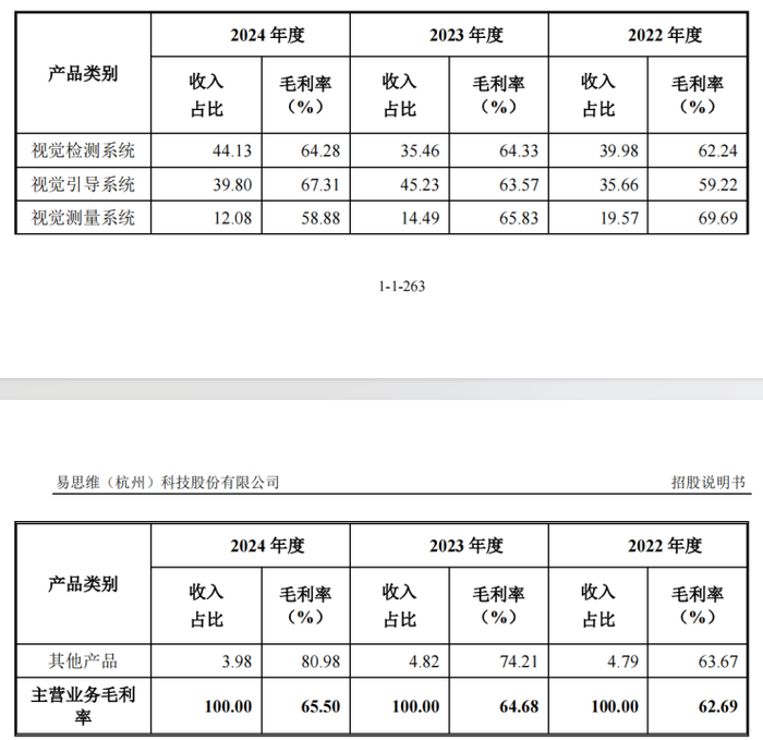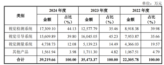 从收入类别构成来看,2024年,除了视觉检测系统业务收入实现增长,视觉引导系统和视觉测量系统均出现下滑,同比分别减少2.71%、7.79%。