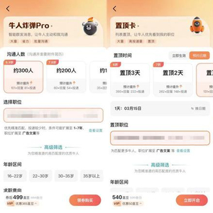 即便签下年框,也不代表能享受“VIP丝滑服务”了。一家中型企业HR点开自己的某招聘平台后台,页面时不时触发一张花花绿绿的道具购买提示,小小的x键在右上角若隐若现。她向21记者提到,现在使用的是一年2万元左右的年卡账号,年费套餐包含了“置顶卡”(岗位置顶在同类岗位上)。但再往上,还有额外的“精准置顶卡”(岗位置顶在搜索页;一天596元)、“曝光刷新卡”(按曝光人次投放岗位;1500人次328元)多种付费推流道具。