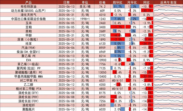 产业链周度价格跟踪(括号为周环比变化)