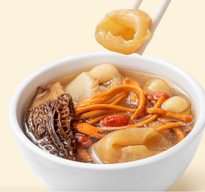 另外,方家铺子严循产品标准,只选个大饱满的黄花筒鱼胶,少血丝少破洞,筋路完整清晰,无人工拼接痕迹,手感干爽。产品采用物理去腥工艺,无化学漂白加工,数倍的泡发率让花胶泡发后达到角多不腥的效果。据介绍,每100g黄花筒鱼胶就含有85.3克蛋白质,而脂肪量仅为1.0克,是名副其实的高蛋白质、低脂肪滋补产品。