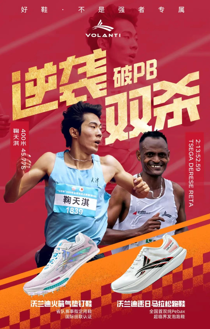 沃兰迪始终坚信:一双真正的好鞋,绝非强者的专属勋章,而应是赋能每一位普通跑者、助力他们超越自我、跑出人生奇迹的终极武器! 此次“田径马拉松两开花”的辉煌战绩,正是沃兰迪品牌理念与科技实力的完美体现。
