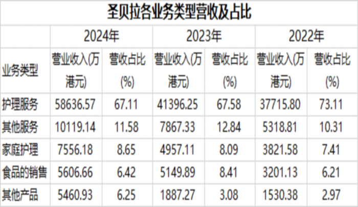财务数据显示,圣贝拉营业收入连续3年增长,2024年达到8.73亿港元,同比增长42.64%,其中护理服务板块营收接近6亿港元,同比增长41.65%。
