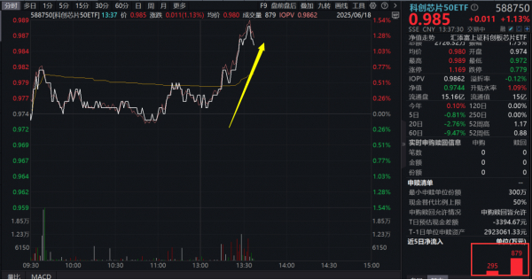 6月18日,陆家嘴论坛正式召开,科创板迎政策支持!$科创芯片50ETF(588750)午后强拉,截至13:37,涨1.13%!资金持续借道$科创芯片50ETF(588750) 布局算力核心基础环节,$科创芯片50ETF(588750)连续2日累计吸金近1000万元!