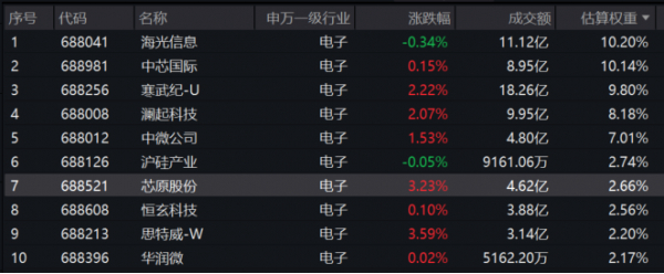 【$科创芯片50ETF(588750)标的指数前十大成分股】