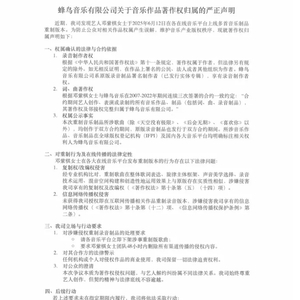据悉,2024年1月,邓紫棋前经纪公司蜂鸟音乐公司就相关歌曲发布版权声明,称:“我公司(蜂鸟音乐有限公司)是以下所列音乐作品之录音、词曲版权独家所有人,拥有在全世界范围内将前述音乐作品以各种商业或非商业目的许可相关机构或个人使用的专有权利。未经我公司许可,禁止任何单位或个人将以下所列音乐作品用作翻唱、复制、演出、网络传播以及其他商业性用途。”