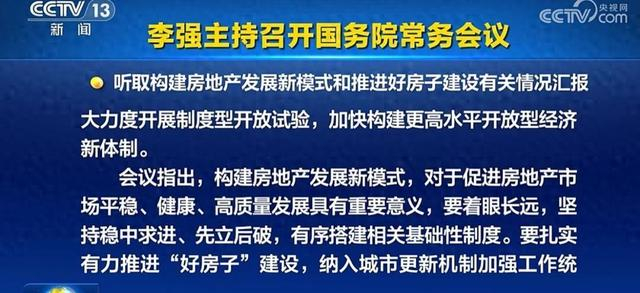 6月15日,李强主持召开国务院常务会议,听取构建房地产发展新模式和推进好房子建设有关情况汇报。