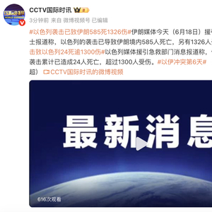 以色列袭击致伊朗585死1326伤,伊朗袭击致以色列24死逾1300伤