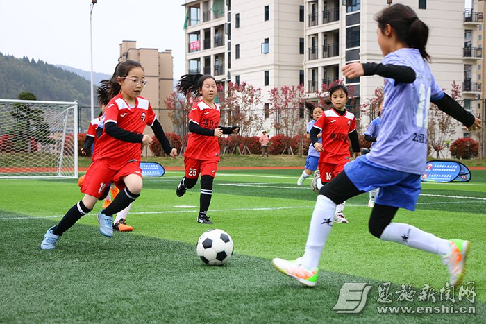 恩施市清江民族学校学生参加足球赛。