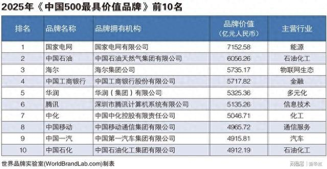 第22届世界品牌大会于6月18日在北京举行。主办方世界品牌实验室(World Brand Lab)发布了2025年《中国500最具价值品牌》分析报告。在这份基于财务数据、品牌强度和消费者行为分析的年度报告中,国家电网以7152.58亿元的品牌价值,荣登本年度最具价值品牌榜首。占据榜单前五名的还有中国石油(6056.26亿元)、海尔(5735.17亿元)、中国工商银行(5717.82亿元)、华润(5325.36亿元),这些品牌已经迈进世界级品牌阵营。来自哈佛、耶鲁、剑桥、麻省理工学院、北京大学的管理大师们,共同出席了世界品牌大会并做主题演讲,并围绕“人工智能革命背景下的全球品牌战略与数字供应链管理”的主题,与现场600位企业家和经理人互动研讨。