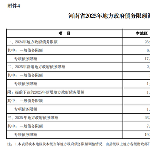 财政部下达河南省2025年新增政府债务限额2334亿元 专项债务限额1971亿元