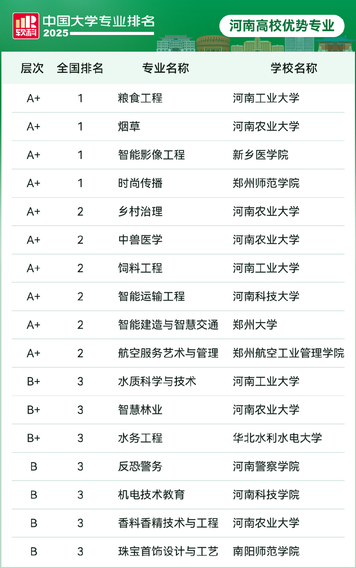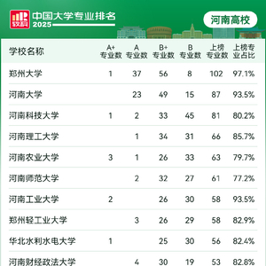 2025软科中国大学专业排名,河南高校1299个专业上榜!