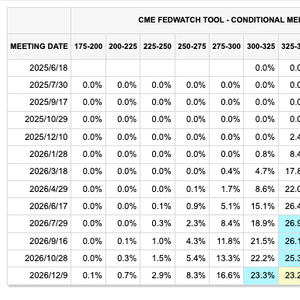 但当前内外部不确定性加剧,美联储下半年政策路径存在较大不确定性。因此在此次议息会议中,市场将密切关注美联储将公布的最新利率“点阵图”和经济前景预期,以及美联储主席鲍威尔的表态,“点阵图”可能比决议本身更重要,如果美联储在点阵图中释放仅降息一次的信号,市场或面临较大波动。根据芝商所“美联储观察工具”显示,市场目前预期美联储可能会在9月或10月降息,年内有望降息两次。