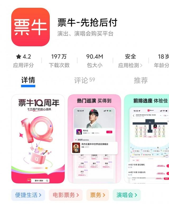 票牛APP相信大家都不陌生,它已经拥有了超2000万的下载量,10年来好评一直挺多的。与大麦、猫眼等一级票务平台相比,当热门演出在这些平台售罄时,票牛依然有票,比如你抢周杰伦香港站、邓紫棋烟台站这类热门演出场次的门票,不需要熬夜蹲守,在票牛这个APP上直接下单,系统就会在开票时自动帮你抢票。此外,市场上热度较低的演出,票牛会根据票务供需情况推出大幅度折扣活动,让预算有限的歌迷也能走进演出现场,感受演唱会的热烈氛围。