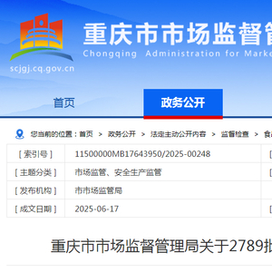 重庆市市场监督管理局关于2789批次食品安全抽检情况的通告