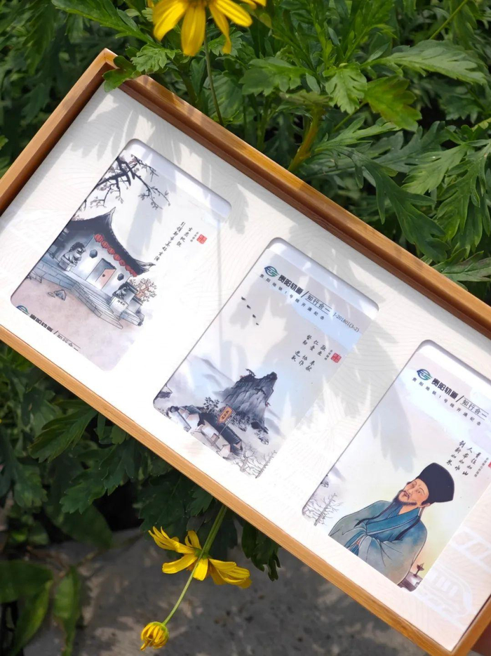 纪念卡采用了《贵阳拾景》内筑城广场、阳明祠两个景点进行设计,还绘制了可爱的轨道交通吉祥物。