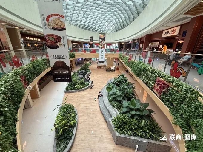 项目在开业之际宣称“公园里的商业体”,探索自然与人的关系。《联商网》在现场看到,万丰海岸城在商场空间上植入了一些绿植、水系等生态场景:A馆五楼中庭大面积的绿植和以原色大理石做的休息凳,整体给人放松和自由感;AB馆之间的连廊也做了大量的绿植设计;20米的立柱矗立在阶梯上,形成的巨树天阶是万丰海岸城的必打卡点。