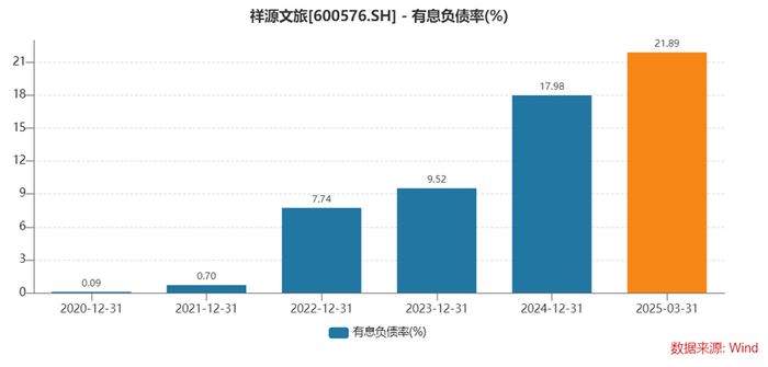这种并购增长的策略直接反映在财务数据上,从2020年底到2025年一季度,公司有息负债率从0.09%一路狂飙至21.89%,增长了243倍;2025年一季度末,总负债达18.26亿元,较去年同期增长107.79%。