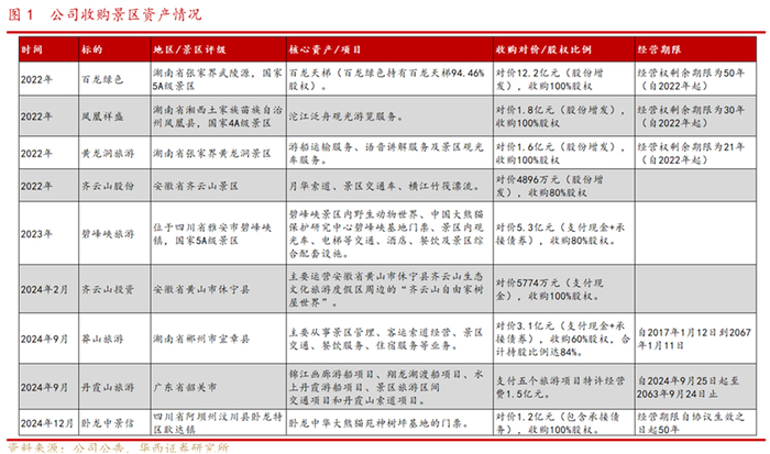 祥源文旅的并购狂潮在2022年后明显加速。根据公开资料梳理:2022年,公司以16.32亿元收购百龙绿色、凤凰祥盛等5家文旅资产;2023年,以5.3亿元收购碧峰峡旅游80%股权;2024年,再以3.1亿元控股湖南莽山景区。短短三年内并购支出已超20亿元,远超公司自身造血能力。
