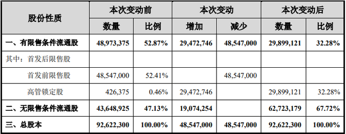本次解除限售后股本结构变动情况如下: