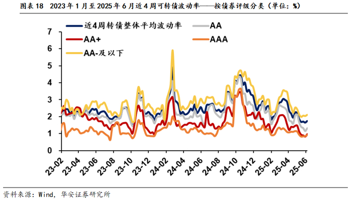 2.2.2 按债券评级分类的可转债波动率分析:高评级走势平稳,低评级波动剧烈