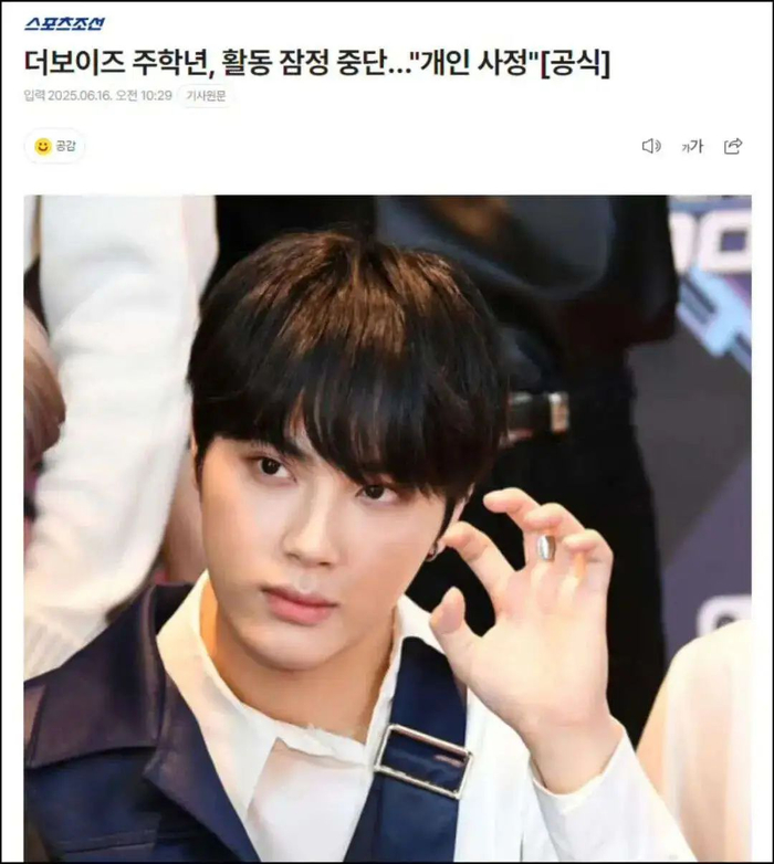此前,6月16日,One Hundred方面曾发布公告:“THE BOYZ成员周鹤年因为个人原因暂时中断活动。很抱歉因为突如其来的消息让各位粉丝感到担心,希望大家能够谅解。” 引发粉丝们的担忧。