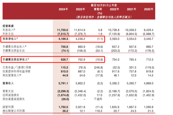 同时,报告期内,该行的手续费及佣金净收入也出现了明显下滑。数据显示,截至2024年底,晋商银行的手续费及佣金净收入从2023年底的7.03亿元下降至2024年底的6.27亿元,同比下滑10.8%。受贸易融资业务模式调整,该行承兑及担保手续费、银行卡服务手续费、结算及清算手续费分别减少了14.5%、29.5%和60.5%。
